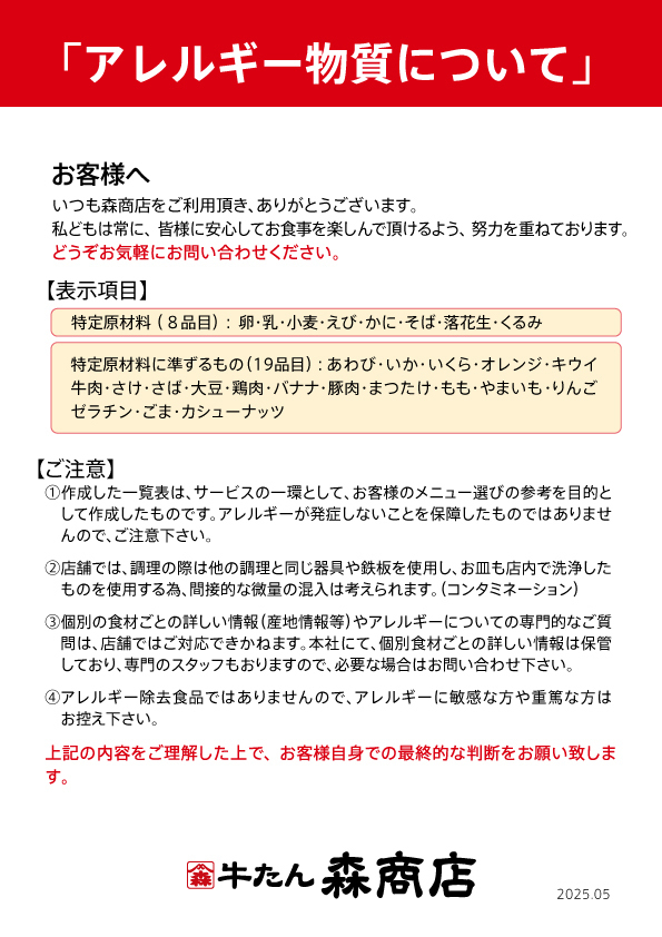 ≪アレルギーについて≫